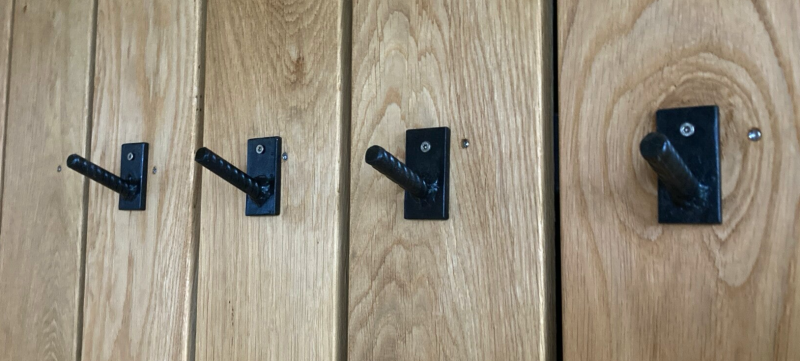 Small heavy metal rebar hangers in black satin or natural oil finish.