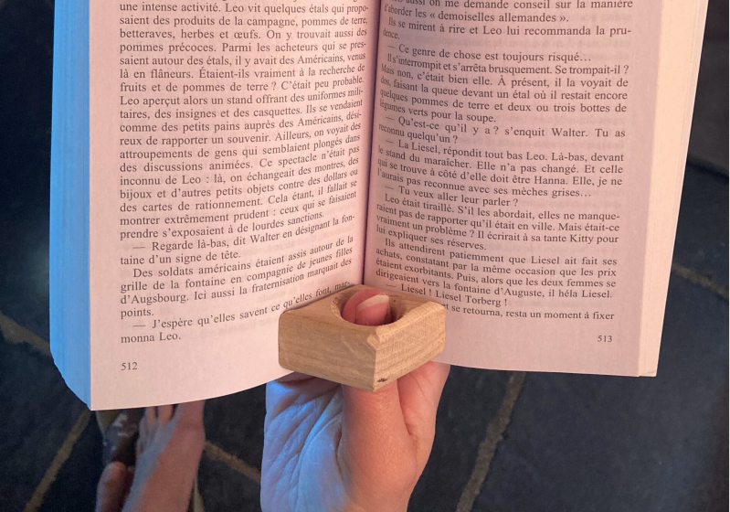 Keep your book open on the right page without damaging it. This together with your drink a cozy candle and your reading glasses.